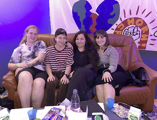 Und tatsächlich, auf einem Podest im hinteren Teil des Raumes sitzen ein paar Leute ganz gemütlich auf Sofas, vor ihnen auf dem Tisch haben sie Snacks ausgebreitet – Schokorosinen, Tomaten und Kekse. Das JuPa ist heute nicht vollständig, vier Leute sind gekommen. Ich werde herzlich begrüßt und bin direkt etwas entspannter.